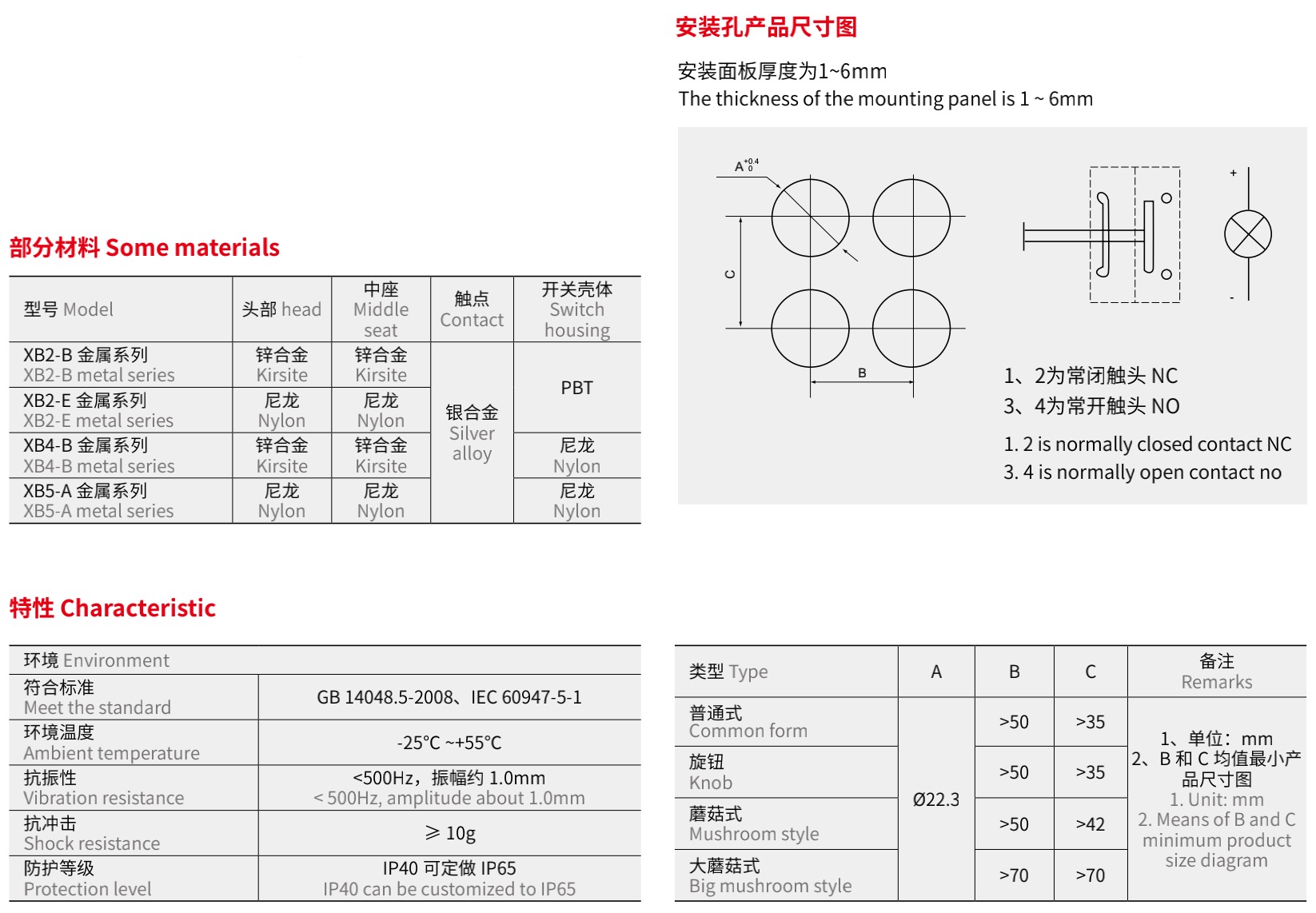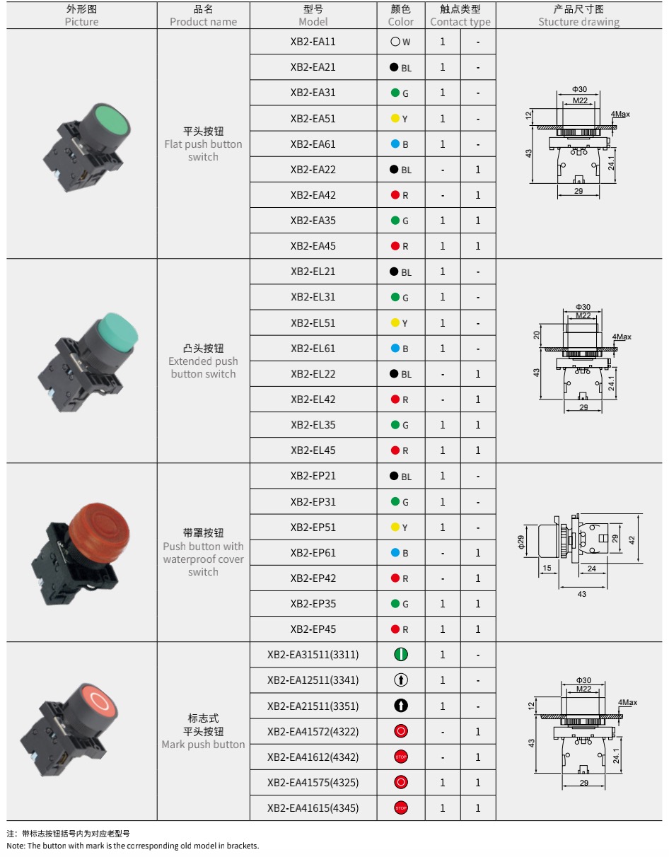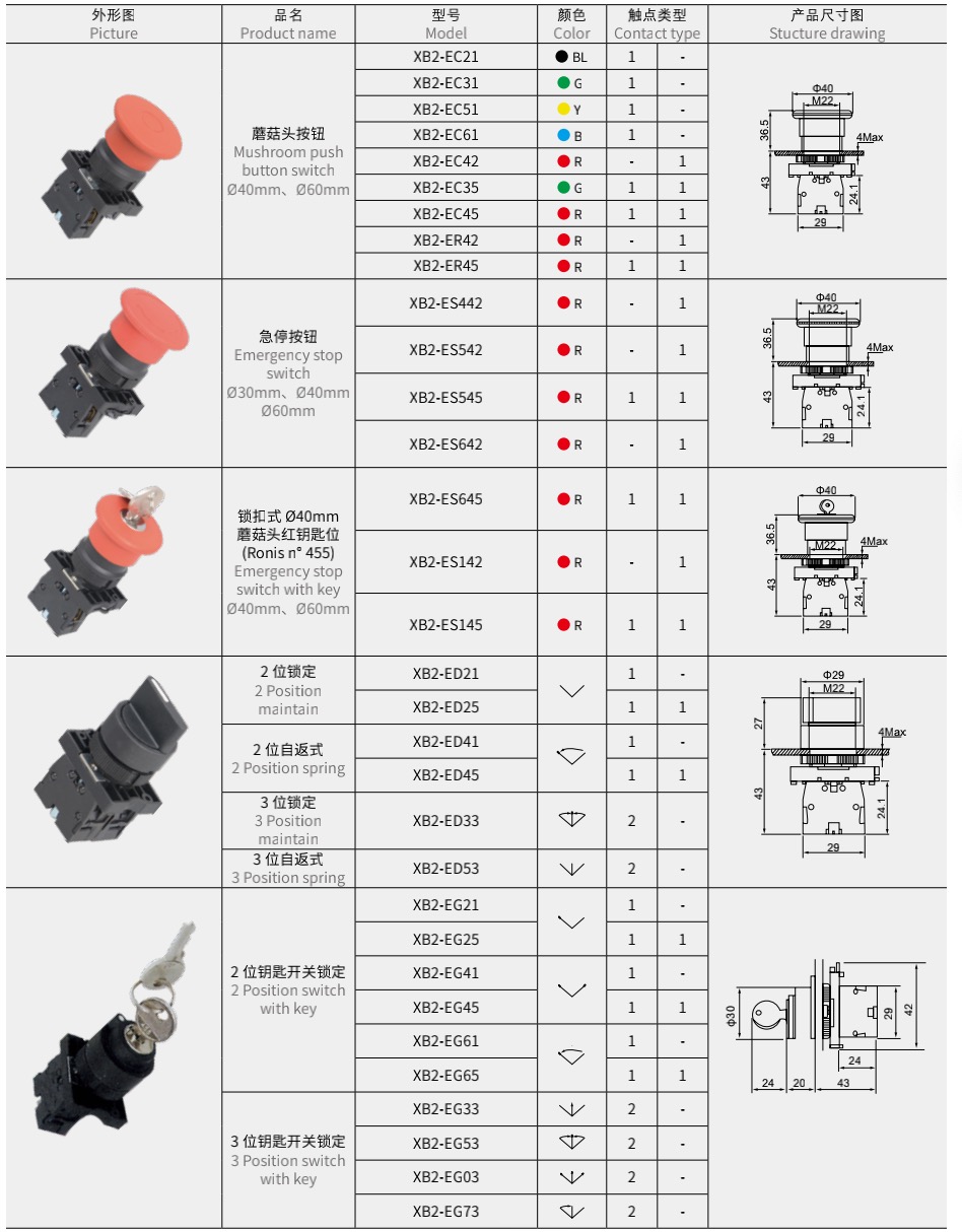 XB2 按钮开关及指示灯