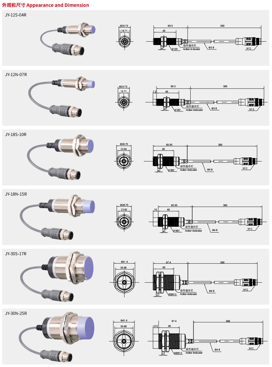 JY-S-R 圆柱形远距离引线接插型接近开关