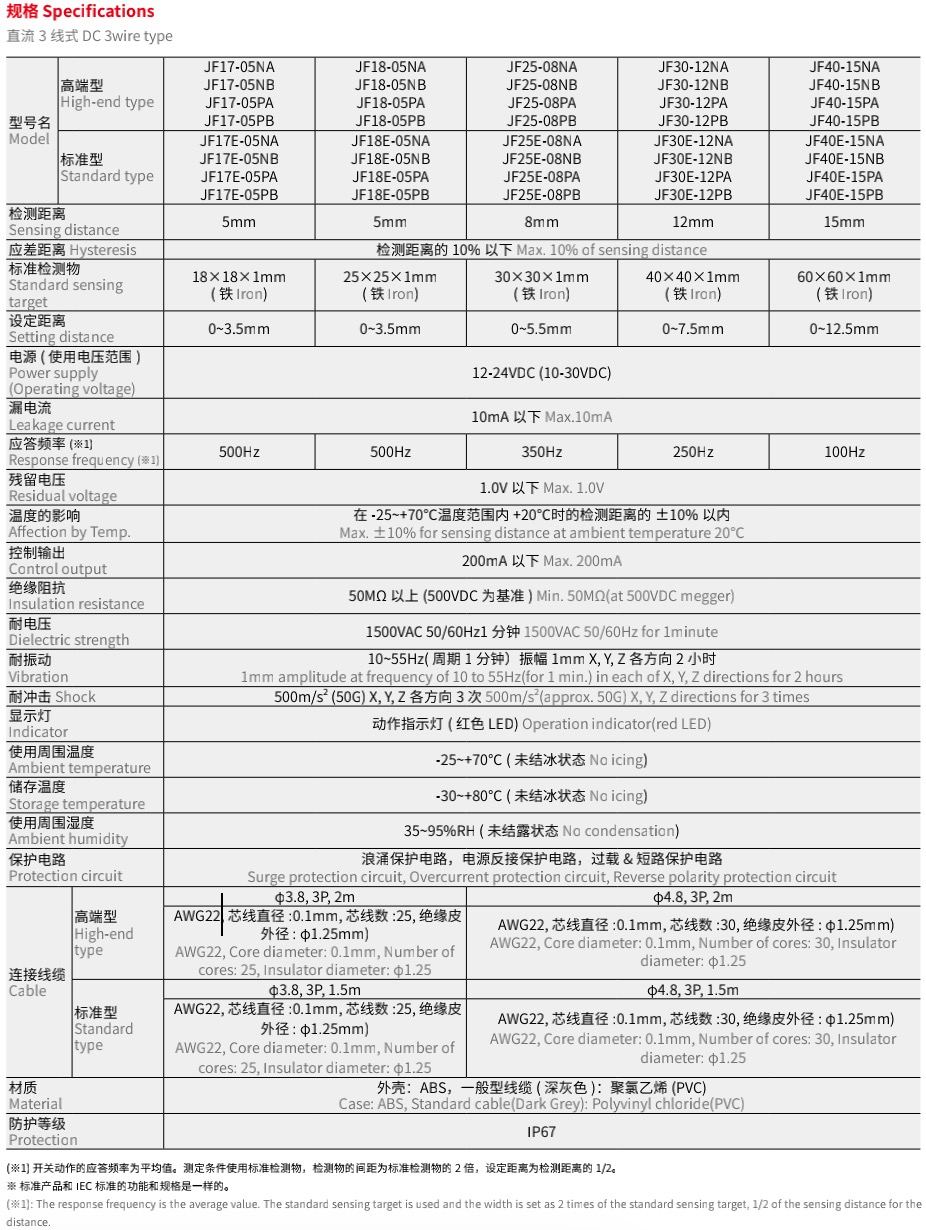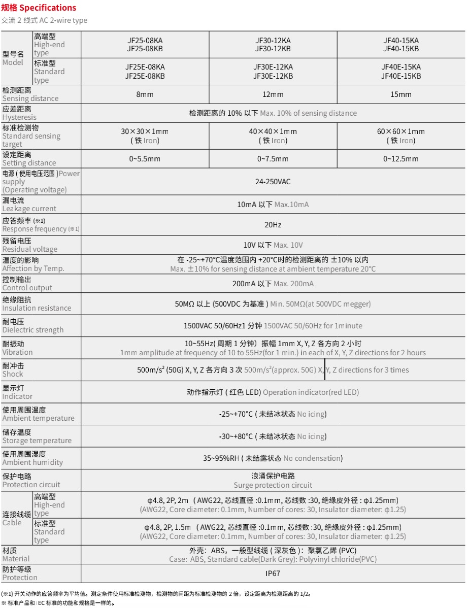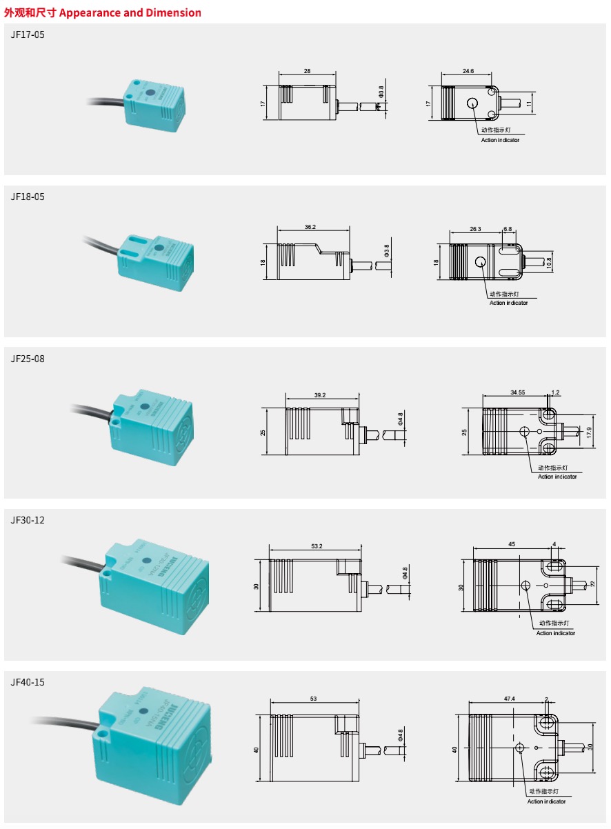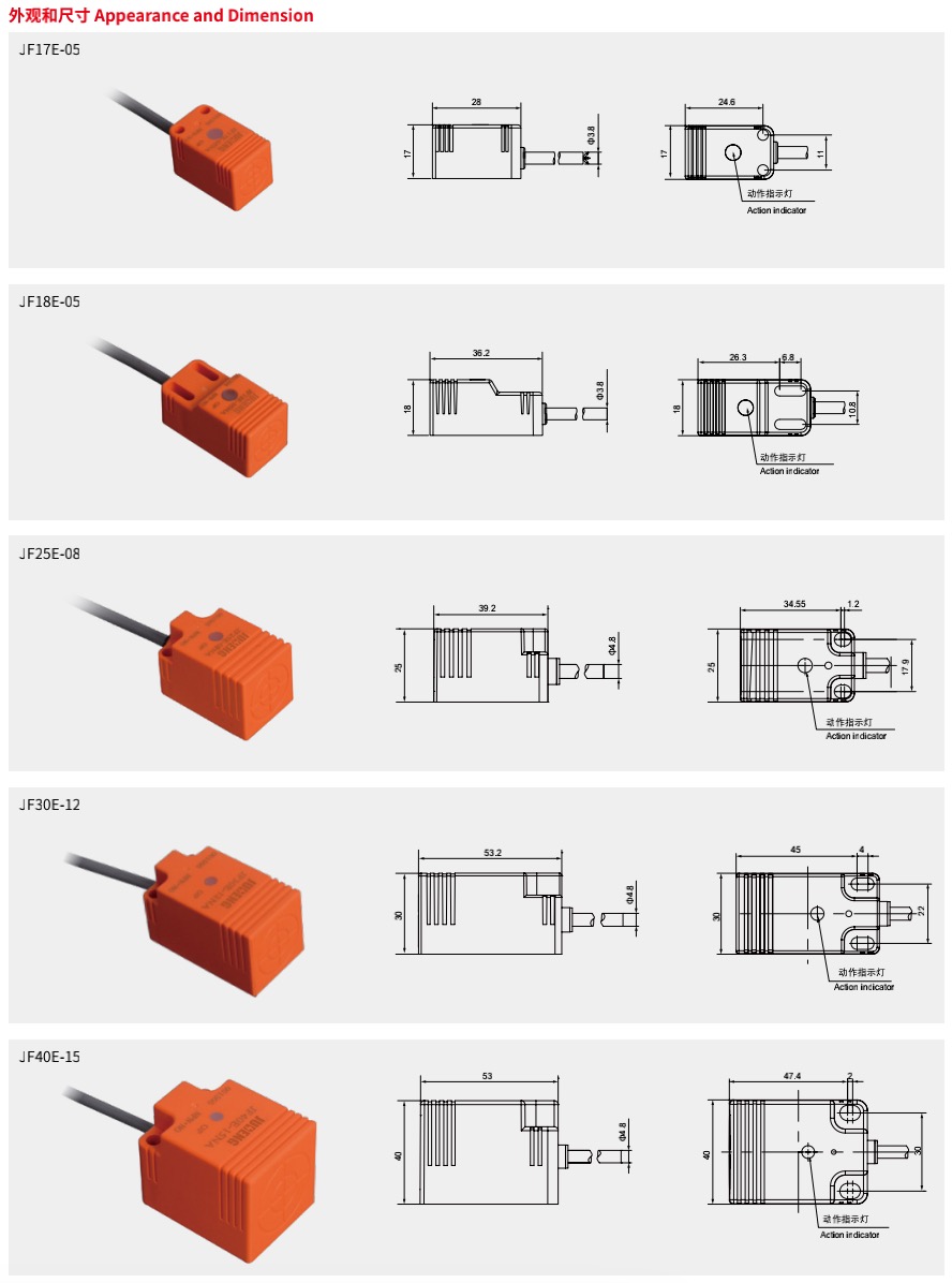 置浪涌保护,电源反接保护和过流保护电路 寿命长,高可靠性,操作简单,经济实惠 红色 LED 状态指示灯,易于识别运行状态 IP67 防护等级 (IEC 规格 ) 可以代替微动开关或限位开关广泛使用