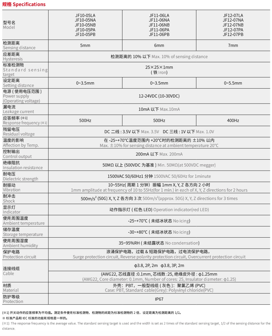 JF 扁平形接近开关 ( 高端型 )