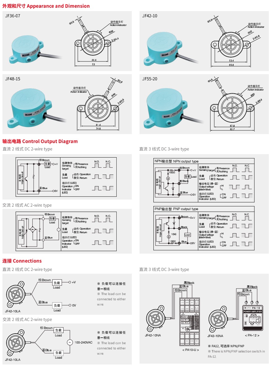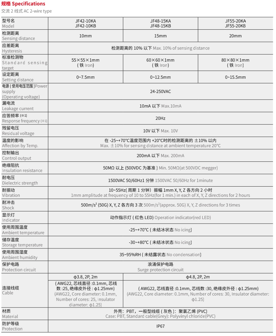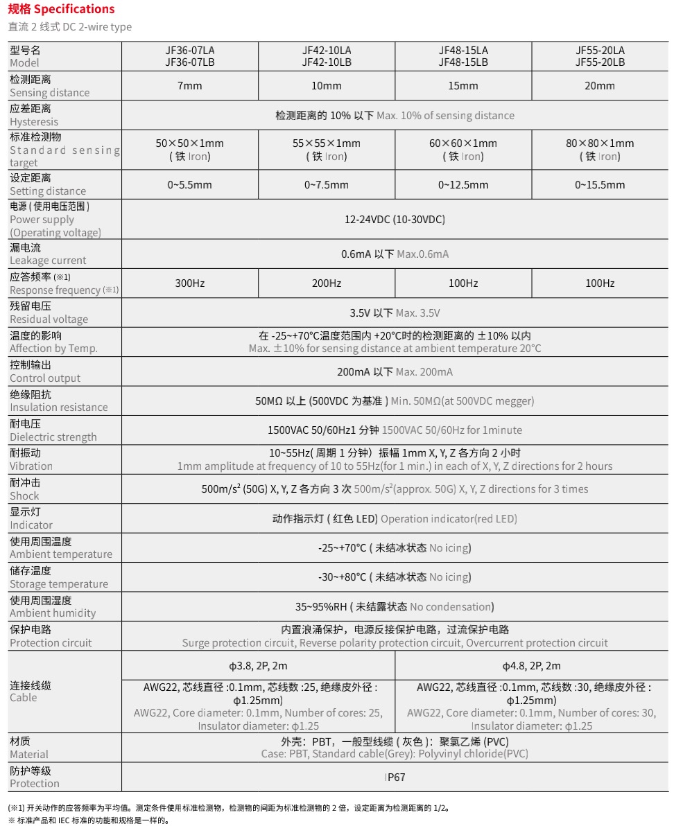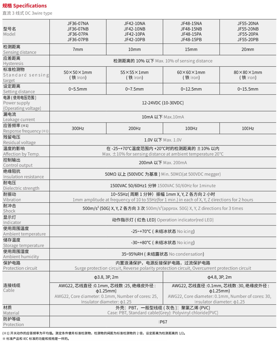内置浪涌保护,电源反接保护和过流保护电路 寿命长,高可靠性,操作简单,经济实惠 红色 LED 状态指示灯,易于识别运行状态 IP67 防护等级 (IEC 规格 ) 可以代替微动开关或限位开关广泛使用