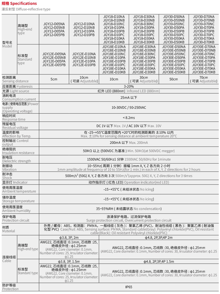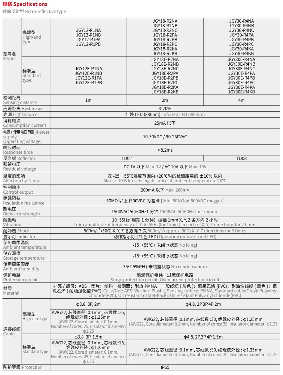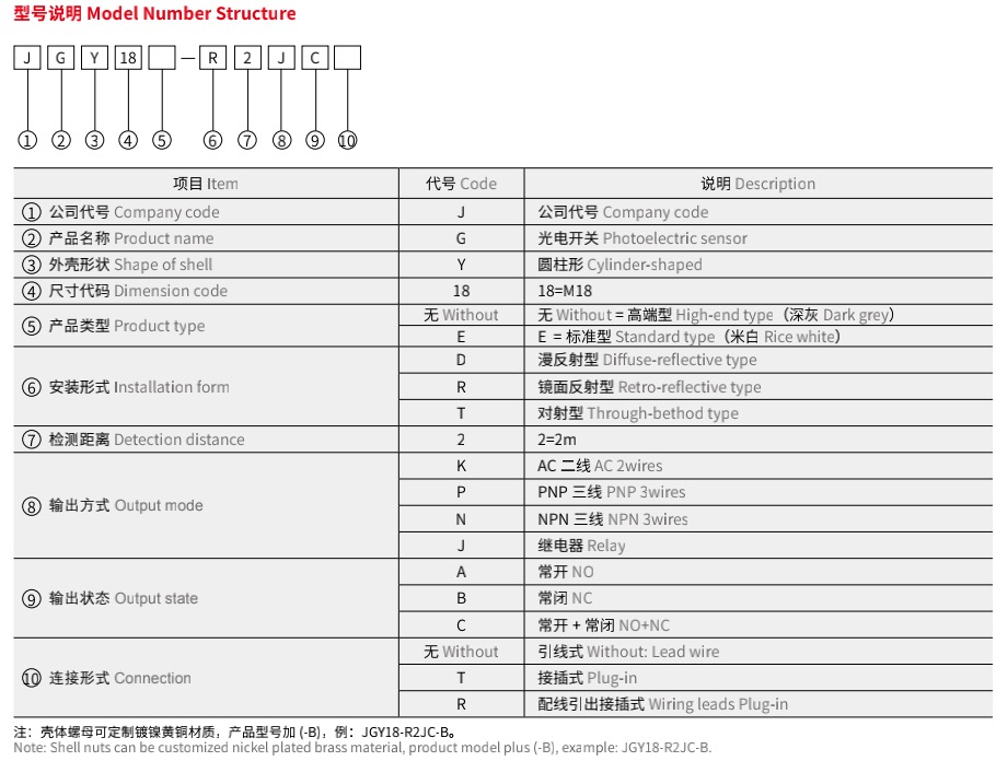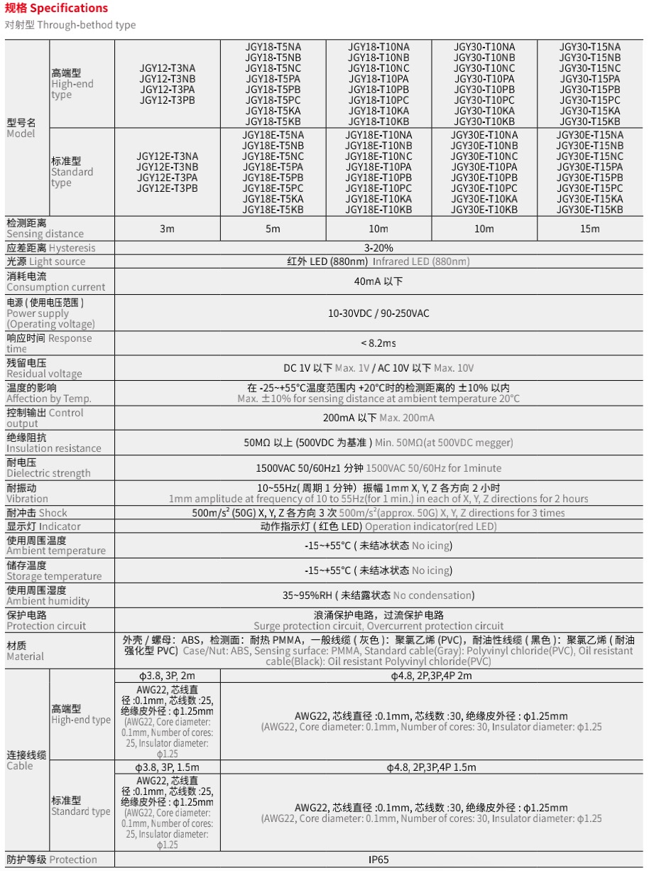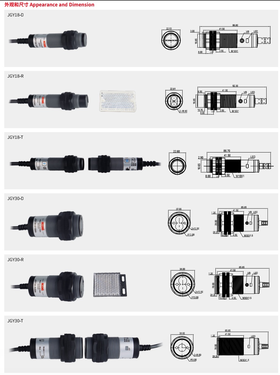 JGY 圆柱形光电开关 Photoelectric Sensor Cylindrical Type