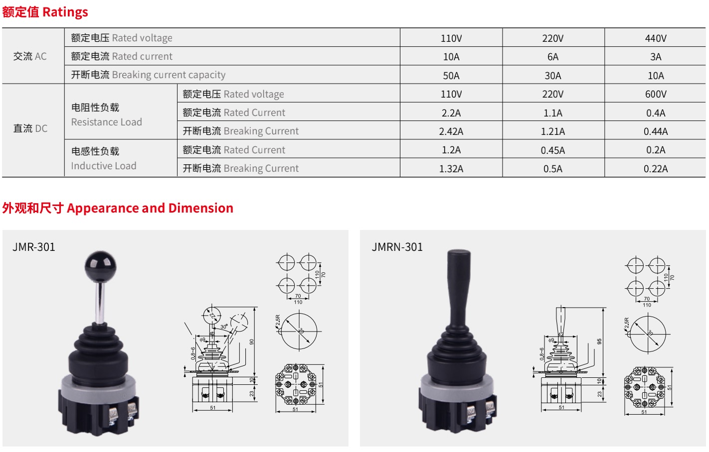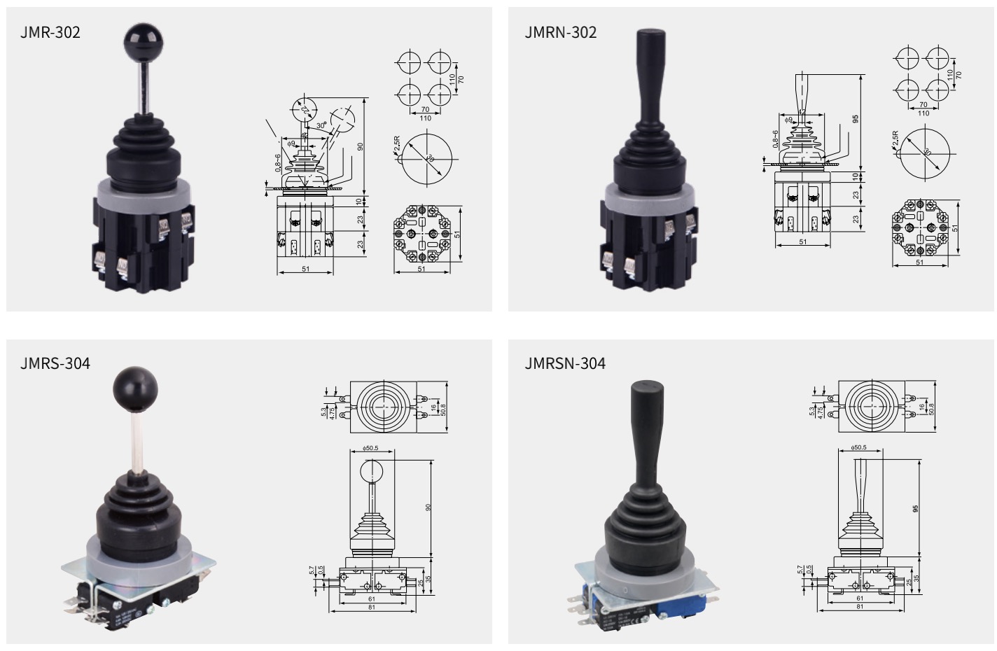 上、下、左、右四方向操作顺畅,具可任意选择一向、二向、三向、或四向有保持、复位、无动作等三种操作方式 接点座有 2a(BR-1),1a1b(BR-2),2b(BE-3)。如下图可自由选择方向与接点之组合 具耐油、防水和防压结构